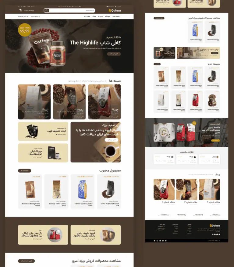 قالب صفحه اصلی Cologne مناسب برای وب سایت نمایش عطر، ادکلن و سایر محصولات آرایشی می باشد. این قالب دارای طراحی زیبا و واکنش گرا و سفارشیسازی آسان است.