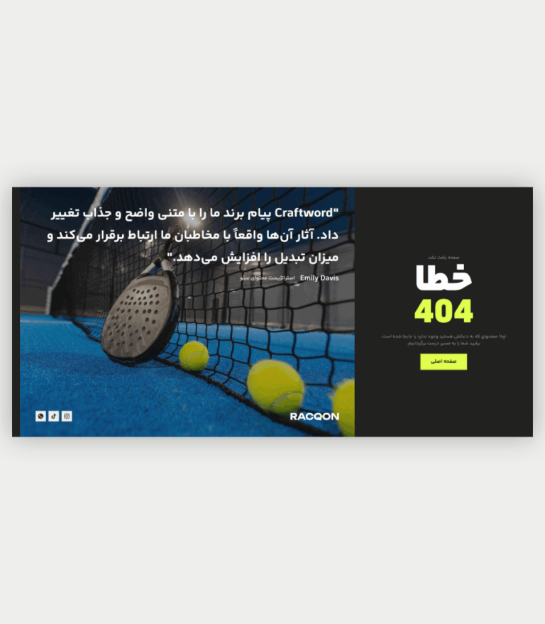 قالب سربرگ Racqon برای باشگاه و زمین پدل، یک کیت المنتور پرو است که برای دسکتاپ، تبلت و موبایل کاملا واکنشگرا طراحی شده است. این قالب با طراحی مدرن، تمیز و رنگ بندی حرفه ای، گزینهای عالی برای باشگاه های پادل و مجموعه های ورزشی است که قصد دارند سایت رزرو زمین یا معرفی خدمات خود را راه اندازی کنند. قابلیت شخصیسازی آسان، تغییر سریع رنگ ها و تنظیمات گوناگون به شما این امکان را میدهد تا بدون نیاز به کد نویسی، یک سایت زیبا، کارآمد و حرفه ای بسازید.